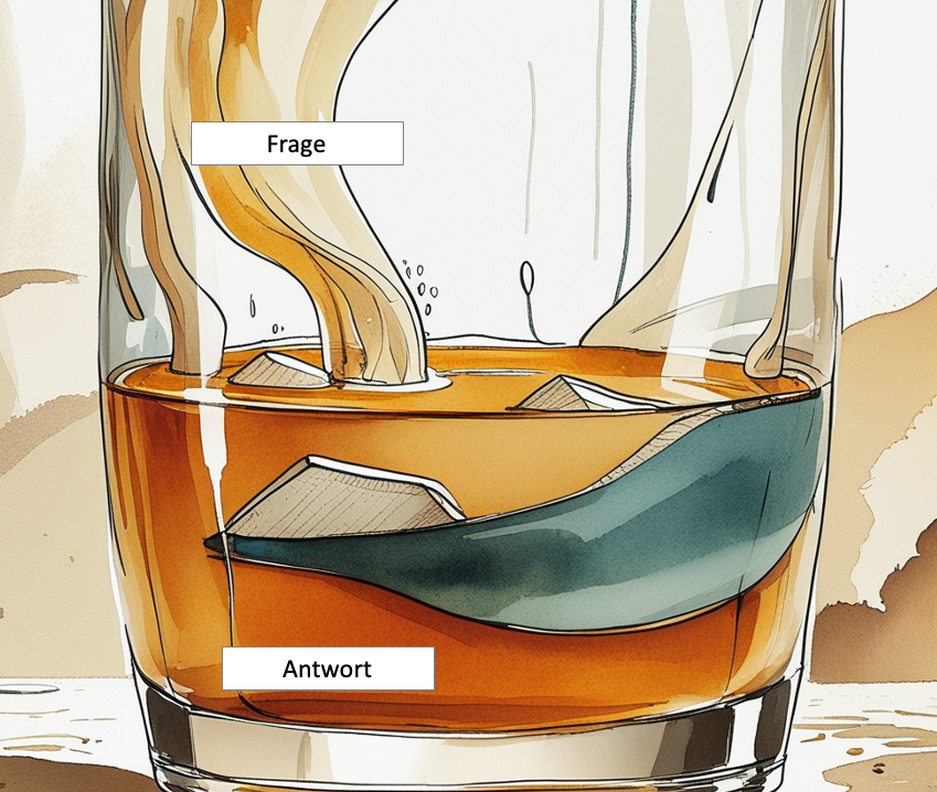Eine gut formulierte offene Frage ist eine super Methode, um ein Thema besser zu verstehen. Wie eine leuchtende Lampe kann eine gute Frage unsere Realität so ausleuchten, dass wir neue Erkenntnisse gewinnen können. Eine gute Frage hilft uns, die Welt besser zu verstehen. Sie zeigt uns, wo wir lohnenswerte Antworten finden können. Oft basieren unsere Annahmen auf unvollständigen Infos. Deshalb ist es gut, wenn wir gezielt nachfragen, um unser Denken und unsere Modellbildung zu erweitern. Ich möchte das mal so sagen: Eine offene Frage lässt in unserem Kopf einen Raum entstehen, der mit leeren Gedanken gefüllt werden kann. Sobald wir Antworten finden, füllen wir diesen Raum damit auf. Wir erkennen also nicht zuerst die Fakten, sondern wir stellen uns die Frage [1], die wir beantworten wollen. Gadamer, ein Schüler von Heidegger [2], nennt das den "Hermeneutischen Vorrang der Frage". Für ihn ist die Frage die Grundlage, um eine Antwort zu verstehen und letztendlich Erkenntnisse zu gewinnen.